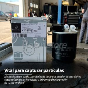 Proteja la precisión de su sistema de inyección con el filtro de combustible diseñado para motores Mercedes-Benz. Este componente es vital para capturar micras de polvo, óxido y, lo más importante, partículas de agua que pueden causar daños catastróficos en los inyectores y la bomba de alta presión de su motor diésel.