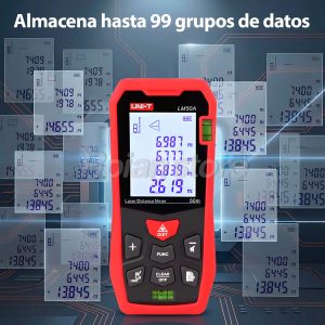 . Almacena hasta 99 grupos de datos, permitiéndote registrar múltiples medidas sin necesidad de anotarlas manualmente.