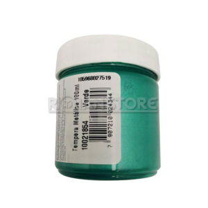Tempera Metálica Verde 100ml, ideal para manualidades o trabajos escolares.