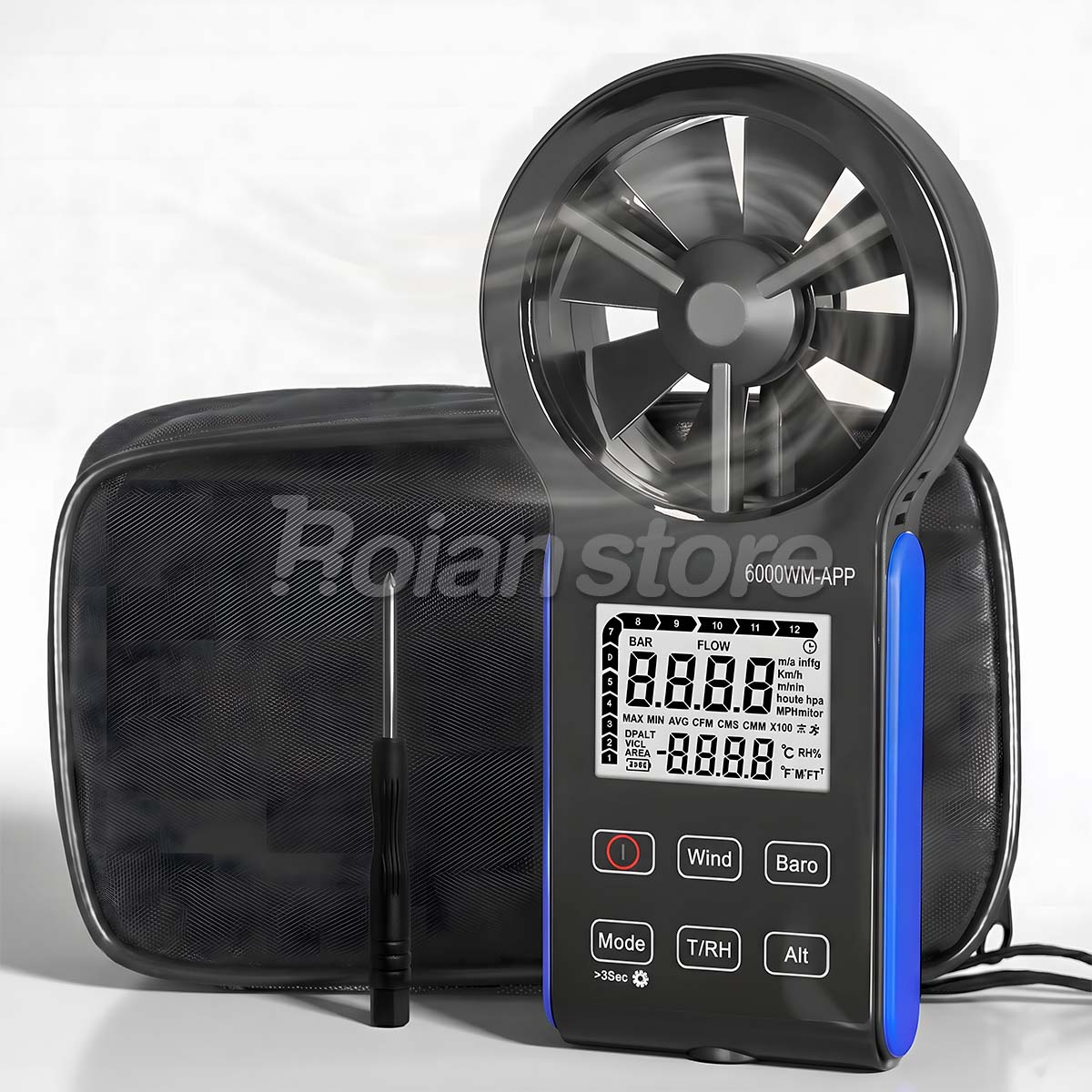 Lleve sus mediciones atmosféricas al nivel profesional con el HOLDPEAK 6000-WM-APP. Este anemómetro no solo mide la velocidad del viento con precisión desde cualquier dirección, sino que integra una estación meteorológica completa en la palma de su mano. Gracias a su conectividad Bluetooth, puede transmitir datos en tiempo real a su smartphone para un análisis detallado, lo que lo convierte en la herramienta perfecta para técnicos HVAC, pilotos de drones y navegantes.
