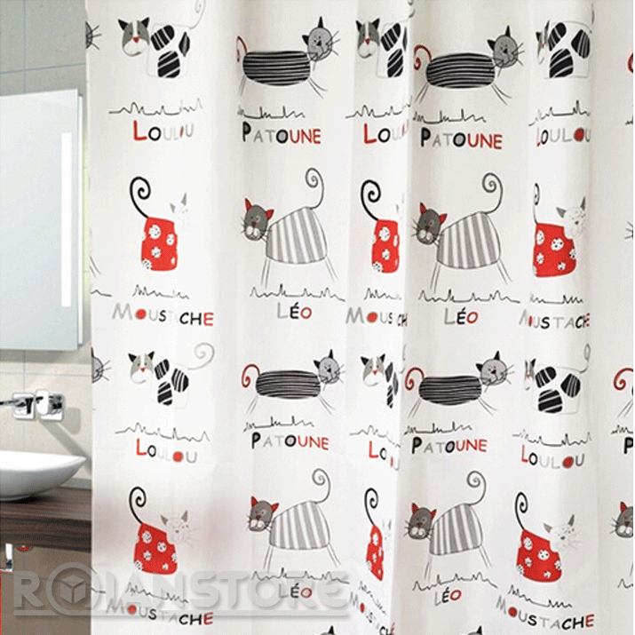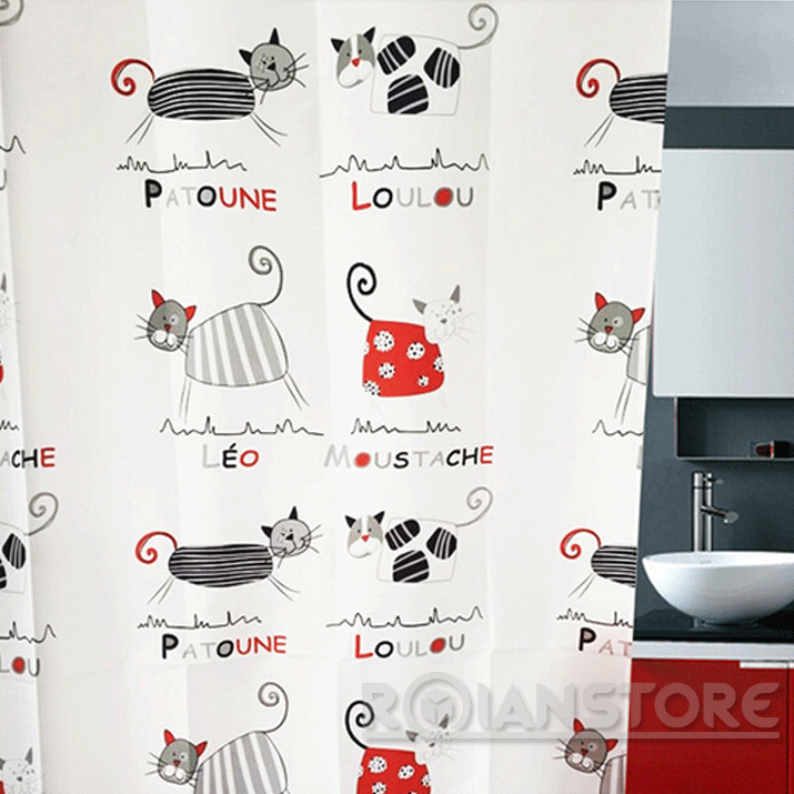 Cortina De Baño Hermoso Diseño Dibujos de Gato 180×180 Cms