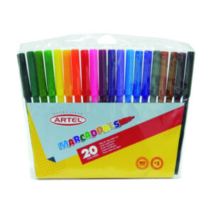 Marcador Escolar en estuche de 20 colores, con tinta a base de agua, apto para pintar en casi todos los tipos de papeles.