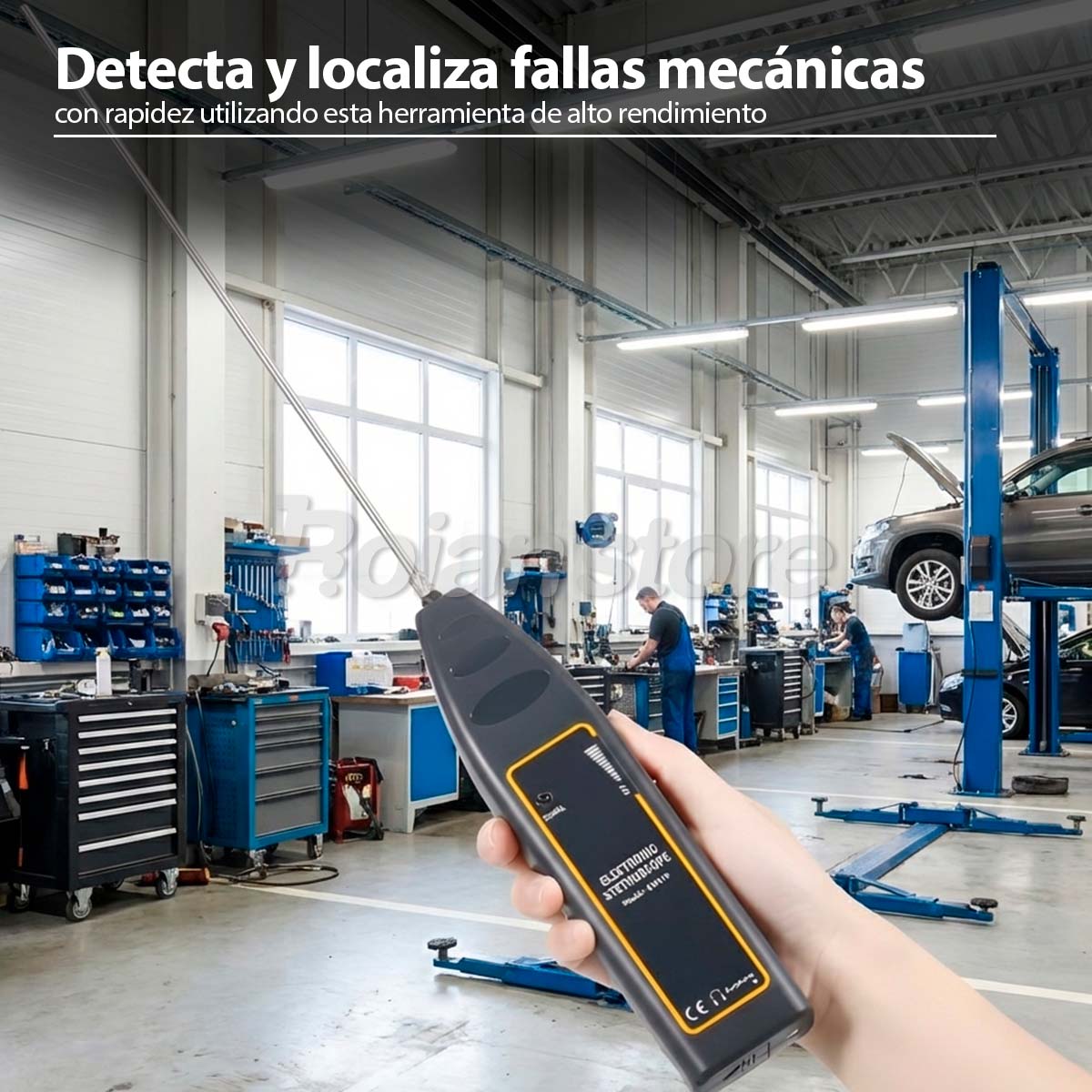 . Especialmente adecuado para la detección de ruido en automóviles, camiones, maquinaria pesada y para el diagnóstico de sonido en cilindros.