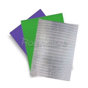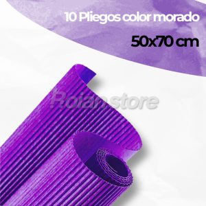 Set de 18 pliegos de cartón corrugado de 50×70 cm en color morado, verde y plateado metálico en LIQUIDACION. Ideal para proyectos creativos, embalajes y manualidades.