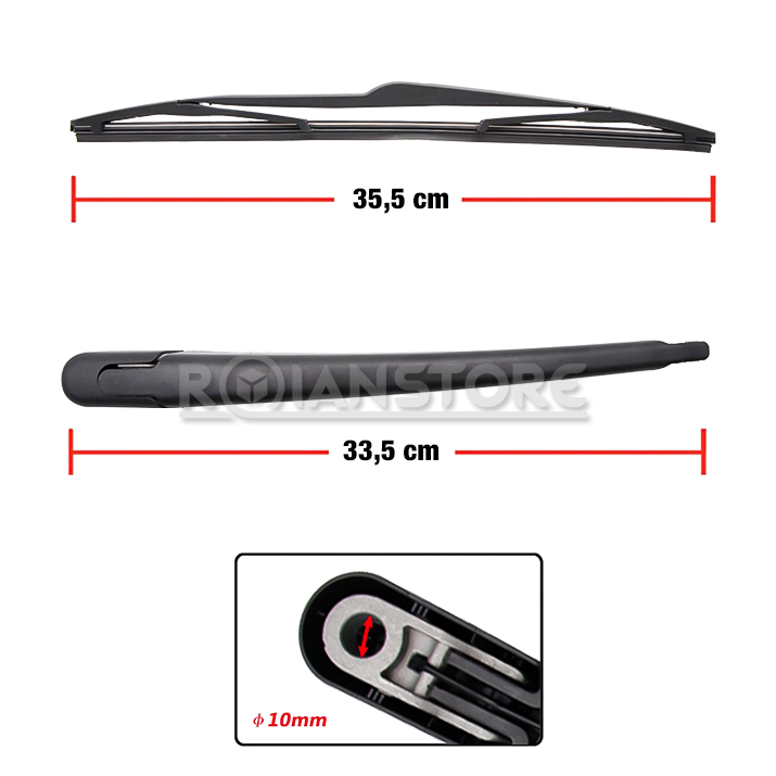 . Dimensiones del brazo limpiaparabrisas: 33,5 x 4 cm aprox.