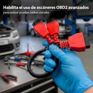 . Habilita el uso de escáneres OBD2 avanzados para realizar pruebas bidireccionales, borrado de códigos de falla, codificación de módulos y funciones especiales que están restringidas con un conector estándar.