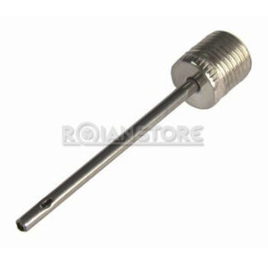 Aguja para inflar balones o cualquier elemento que tenga una boquilla para inflar, adaptando así cualquier bombín a la aguja y poder inflar sin ningún problema.