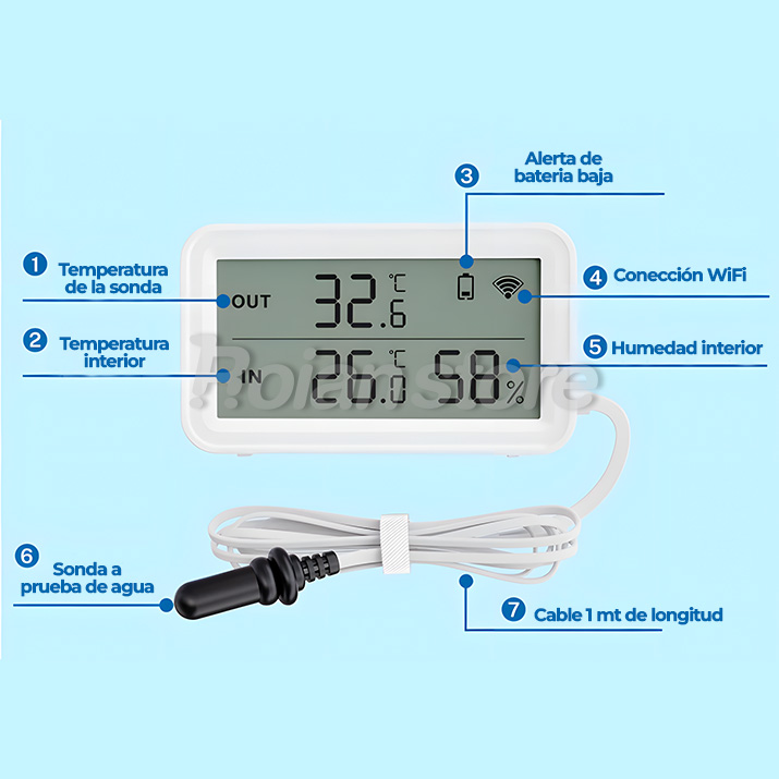 Sensor Sonda Externa Temperatura Humedad Wifi Tuya Alexa M4