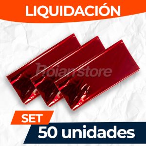 Set de 50 unidades de papel celofán rojo en LIQUIDACIÓN. Descubre la versatilidad y el brillo del Papel Celofán Rojo, es la solución perfecta para envolver y decorar regalos o para dar un toque creativo y festivo a tus proyectos artesanales. Ofrece una cobertura amplia y un acabado elegante que transforma cualquier presentación en una experiencia visual inolvidable.