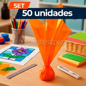 Set de 50 unidades de papel celofán naranja en LIQUIDACIÓN. Descubre la versatilidad y el brillo del Papel Celofán naranja, es la solución perfecta para envolver y decorar regalos o para dar un toque creativo y festivo a tus proyectos artesanales. Ofrece una cobertura amplia y un acabado elegante que transforma cualquier presentación en una experiencia visual inolvidable.