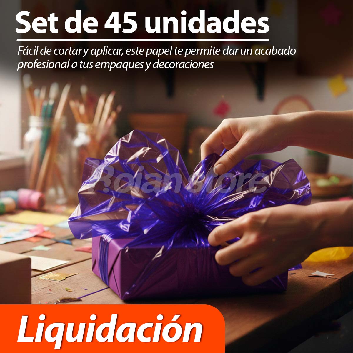 Set de 40 unidades de papel celofán café en LIQUIDACIÓN. Descubre la versatilidad y el brillo del Papel Celofán café, es la solución perfecta para envolver y decorar regalos o para dar un toque creativo y festivo a tus proyectos artesanales. Ofrece una cobertura amplia y un acabado elegante que transforma cualquier presentación en una experiencia visual inolvidable.
