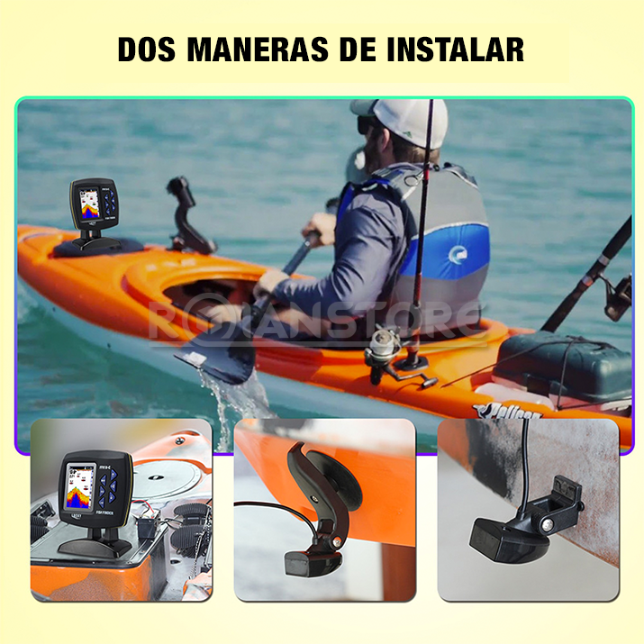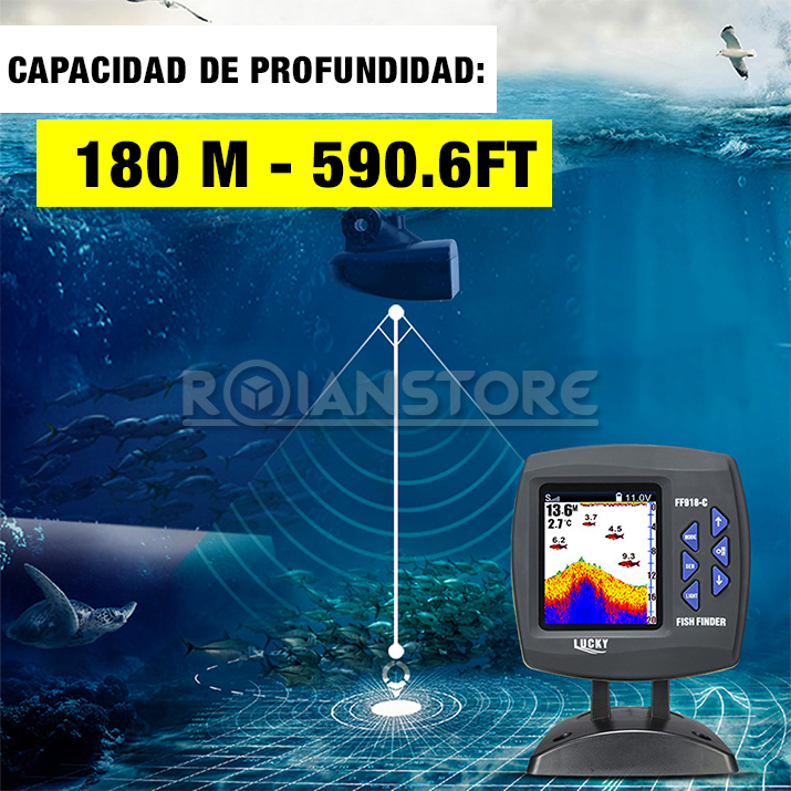. Detecta; profundidad del agua, temperatura del agua y ubicación de los peces.