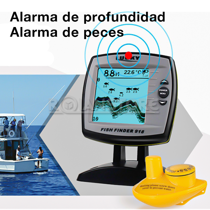 . Detecta; profundidad del agua, temperatura del agua y ubicación de los peces.
